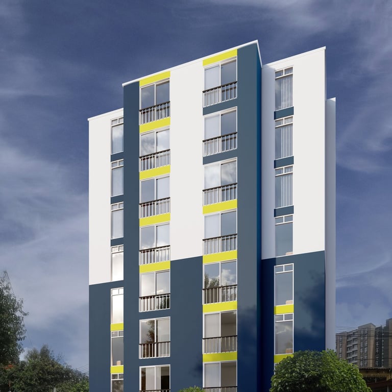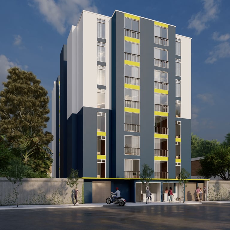 Constará de un edificio de 8 niveles, 42 apartamentos de dos o tres habitaciones, para familias de hasta 6 habitantes y con amenidades como recepción, locales comerciales, área de lavandería, salón social, terraza, juegos de niños y área. de churrasqueras. Parqueo únicamente para motocicletas.